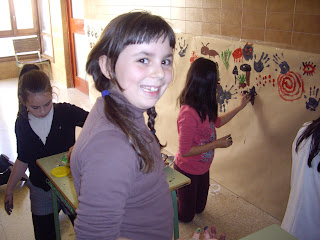 Ayer estuvimos pintando en el pasillo de nuestra planta pinturas rupestres como si fuésemos auténticos hombres y mujeres del Paleolítico. Los materiales que usaron fueron sus propias manos, plumas, palillos, ramas,piedras,etc, utensilios que usaban en la época,